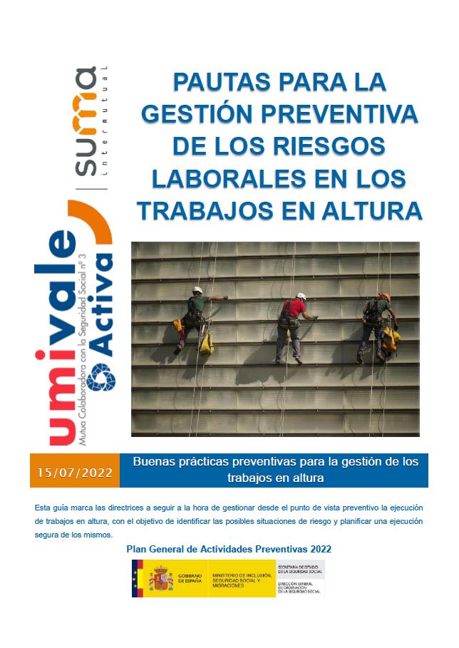 Con estas cifras la mutua Umivale Activa ha lanzado una campaña para la prevención de riesgos durante la realización de trabajos en altura, compuesta por una guía con pautas para la gestión preventiva de los riesgos laborales existentes durante este tipo de trabajos y cuatro audiovisuales para identificar las posibles situaciones de riesgo y planificar una ejecución segura de los mismos.