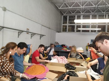 Coincidiendo con la celebración de su reunión anual, participaron en las labores de criba y almacenaje de ropa y juguetes.