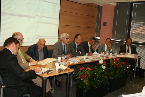 PIE DE FOTO: De izquierda a derecha: Miquel Benabarre, Secretario General; Fernando García, Asesor de Presidencia; Josep Maria Montañola, Vicepresidente Tercero; Miquel Àngel Puig, Director Gerente; José Domingo Valls, Presidente; Javier Artal, Vicepresidente Segundo; Josep Noguès, Asesor de Presidencia, y Ferran Plana, Subdirector General.