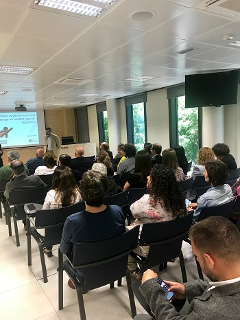 Ante una nutrida representación de trabajadores de la entidad, Agredano alertó ante la dimensión de esta enfermedad, los factores de riesgo que se deben de tener en cuenta y cómo actuar para prevenirla. Asimismo, el presidente de dicha asociación aportó información útil de cara a la detección precoz del ictus y cómo actuar en caso de producirse un incidente de estas características en nuestro entorno inmediato. «El tiempo de reacción es vida», aseguró Agredano en referencia a la importancia de actuar rápido y con eficacia, quien además compartió su experiencia personal con respecto a esta enfermedad. «El ictus puede prevenirse en un 90 por ciento de los casos con dieta saludable, actividad física; control de peso, presión arterial, pulso y colesterol, junto con el abandono de hábitos tóxicos como tabaco o alcohol», añadió.