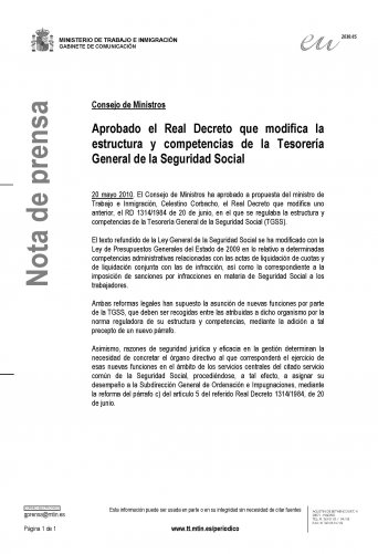 Ambas reformas legales han supuesto la asunción de nuevas funciones por parte de la TGSS, que deben ser recogidas entre las atribuidas a dicho organismo por la norma reguladora de su estructura y competencias, mediante la adición a tal precepto de un nuevo párrafo.