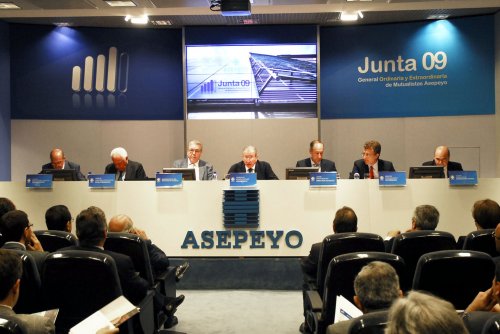 Asepeyo ha convocado en el Hospital Asepeyo Sant Cugat a su Junta General Ordinaria y Extraordinaria de Mutualistas, en la que Leopoldo Rodés, presidente de la Mutua, y Jorge Serra, director gerente, han presentado los resultados del ejercicio 2009.