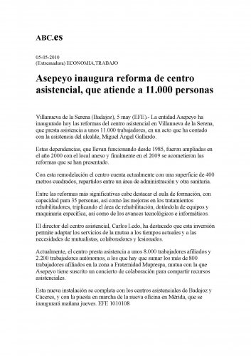 Actualmente, el centro presta asistencia a unos 8.000 trabajadores afiliados y 2.200 trabajadores autonomos, a los que hay que sumar los mas de 800 trabajadores afiliados en la zona a Fraternidad Muprespa, mutua con la que Asepeyo tiene suscrito un concierto de colaboracion para compartir recursos asistenciales.