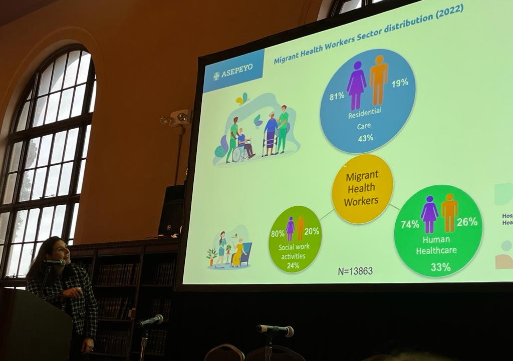 Por su parte, la Dra. Leyre de la Peña, médico especialista en Medicina del Trabajo de la Dirección de Asistencia Sanitaria de Asepeyo, ha realizado la ponencia “Salud mental en población sanitaria migrante”, con el objetivo de determinar la prevalencia de los trastornos de salud en la población sanitaria protegida por Asepeyo, en relación con otros colectivos. “Hemos identificado los trastornos de salud mental en la población de estudio y su distribución en los últimos cinco años. Esto nos ha permitido mostrar los trastornos de salud mental en el personal sanitario migrante y no migrante según sus características sociodemográficas y tipo de colectivo (atención sanitaria, atención sociosanitaria o atención social no residencial)”, explica la Dra. De la Peña.