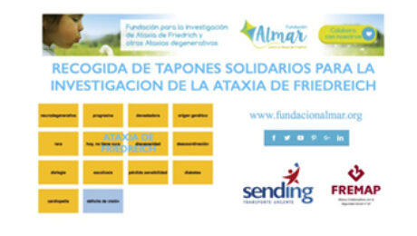 Fuente: Fremap FREMAP en colaboracion con la empresa de distribucion Sending ponen en marcha esta accion solidaria que tiene como objetivo recaudar fondos para la lucha contra la Ataxia de Friedreich En esta campaña, Sending participará durante un año recolectando tapones de plástico de contenedores distribuidos y ubicados por FREMAP, a nivel nacional, en todos