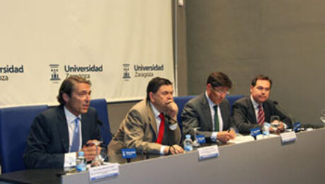 Fuente: MAZ La Mutua MAZ, el Instituto Aragones de Fomento (IAF) y el Instituto de Investigacion en Ingenieria (I3A) trabajaran conjuntamente para prevenir y tratar lesiones en accidentes laborales, de trafico, deportivos, de ocio o domesticos. Guillermo de Vilchez, director gerente de MAZ, el rector de la Universidad de Zaragoza, Manuel Lopez Perez y el