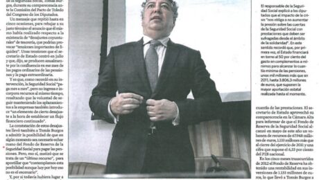 Fuente: El Economista Tomas Burgos reconoce desajustes coyunturales pero garantiza la viabilidad de las pensiones. El Fondo de Reserva aumento un 1,7% entre enero y mayo y acumula ya 67.948 millones. 1192_artRel.pdf