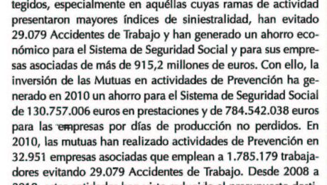 Las actividades de prevencion de las Mutuas evitan mas de 29.000 accidentes de trabajo.