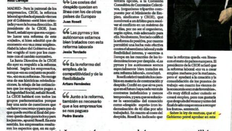 Fuente: La Razon Rosell sostiene que la reforma no creara empleo a corto plazo. Pide que las mutuas den altas y bajas. 1049_artRel.pdf