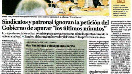 Fuente: La Gaceta de los Negocios Los agentes sociales evitan reunirse para acercar posturas sobre los puntos clave de la reforma laboral. Empleo elaborara un borrador del texto en las proximas semanas. 992_artRel.pdf
