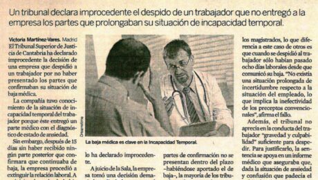 Fuente: Expansion Un tribunal declara improcedente el despido de un trabajador que no entrego a la empresa los partes que prolongaban su situacion de incapacidad temporal. 820_artRel.pdf