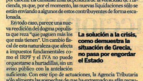 Fuente: Expansion Los apanos del Gobierno para tratar de cuadrar las cuentas publicas se estan multiplicando en las ultimas semanas. Si hace unos dias dabamos cuenta en estas mismas paginas de la intencion del Ministerio de Trabajo de apropiarse de unos 275 millones de euros de las mutuas laborales, ahora es la Agencia Tributaria la