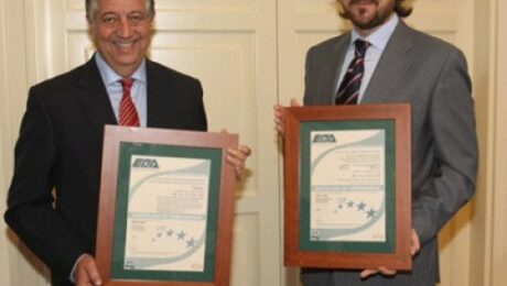 Fuente: infocalidad.net Juan Jose Alvarez, director de Mutua Universal recibio por parte de Ignacio Martinez, director de European Quality Asurance (EQA), las renovaciones de los certificados ISO 9001:2008 y la ISO 14001:2004 de Medio ambiente. Esta renovación supone que Mutua Universal disponga actualmente de 110 centros asistenciales certificados bajo la ISO 9001, incluyendo las dos