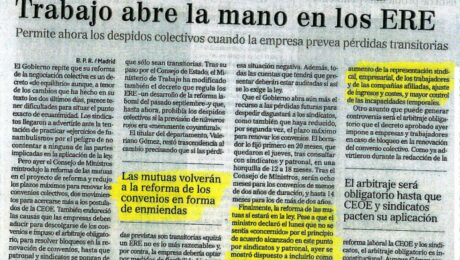 Fuente: El Economista Limita la ultraactividad de los convenios por la via inconstitucional, imponiendo el laudo arbitral. Recorta el plazo para negociar el nuevo contrato e introducira medidas para combatir el absentismo. 690_artRel.pdf