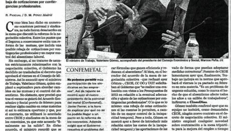 Trabajo aparca el control del absentismo y la rebaja de cuotas.