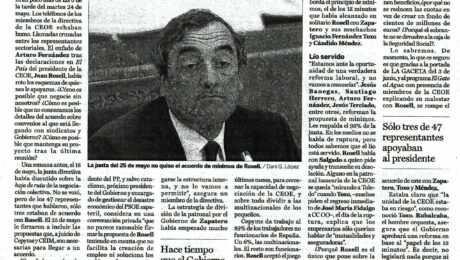 Fuente: La Gaceta de los Negocios La posicion de Juan Rosell es mas debil que nunca; o lidera a los empresarios o forzaran su salida 675_artRel.pdf