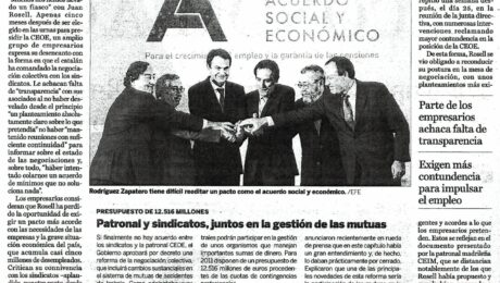 Fuente: La Gaceta de los Negocios Le recriminan que haya perdido el tiempo con posiciones intermedias en la negociacion colectiva. CEOE, UGT y CCOO no se levantan de la mesa y seguiran reuniendose hasta que el Ejecutivo legisle. 668_artRel.pdf