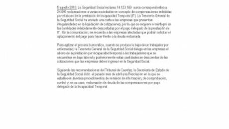 La Seguridad Social reclama mas de 14 millones de euros por descuentos indebidos por el pago de la Incapacidad Temporal