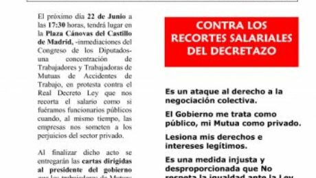Comfia-CC.OO. convoca a los trabajadores y trabajadoras de Mutuas a una concentracion en Madrid, el 22 de junio.