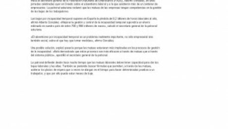 Asturias pierde 21 millones de horas de trabajo al ano por las bajas, segun FADE