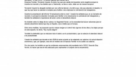 Fuente: finanzas.com Ha insistido sobre la rebaja de las cuotas a la Seguridad Social y en la necesidad de buscar soluciones para el elevado absentismo laboral que hay en Espana, casi el doble que en Europa. Entre otras medidas, ha propuesto que las mutuas tengan un control mas riguroso de las altas y las bajas