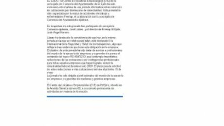 Fuente: TELEPRENSA.ES Se ha desarrollado en el Centro de Iniciativas Empresariales EL EJIDO.- El Centro de Iniciativas Empresariales (CIE) de la concejalia de Comercio del Ayuntamiento de El Ejido ha sido escenario esta manana de una jornada informativa sobre reduccion de cotizaciones por disminucion de siniestralidad. Esta jornada ha sido organizada por la mutua de