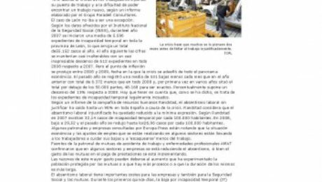 Fuente: la-cronica.net Los leoneses presentaron menos de 50.000 expedientes de incapacidad temporal Como esta afectando la crisis al absentismo laboral? Como era de esperar frenando su imparable aumento de los ultimos anos e incluso reduciendolo. El absentismo laboral descendio en Espana un 62% en 2009 y las bajas fingidas un 45% debido al miedo de