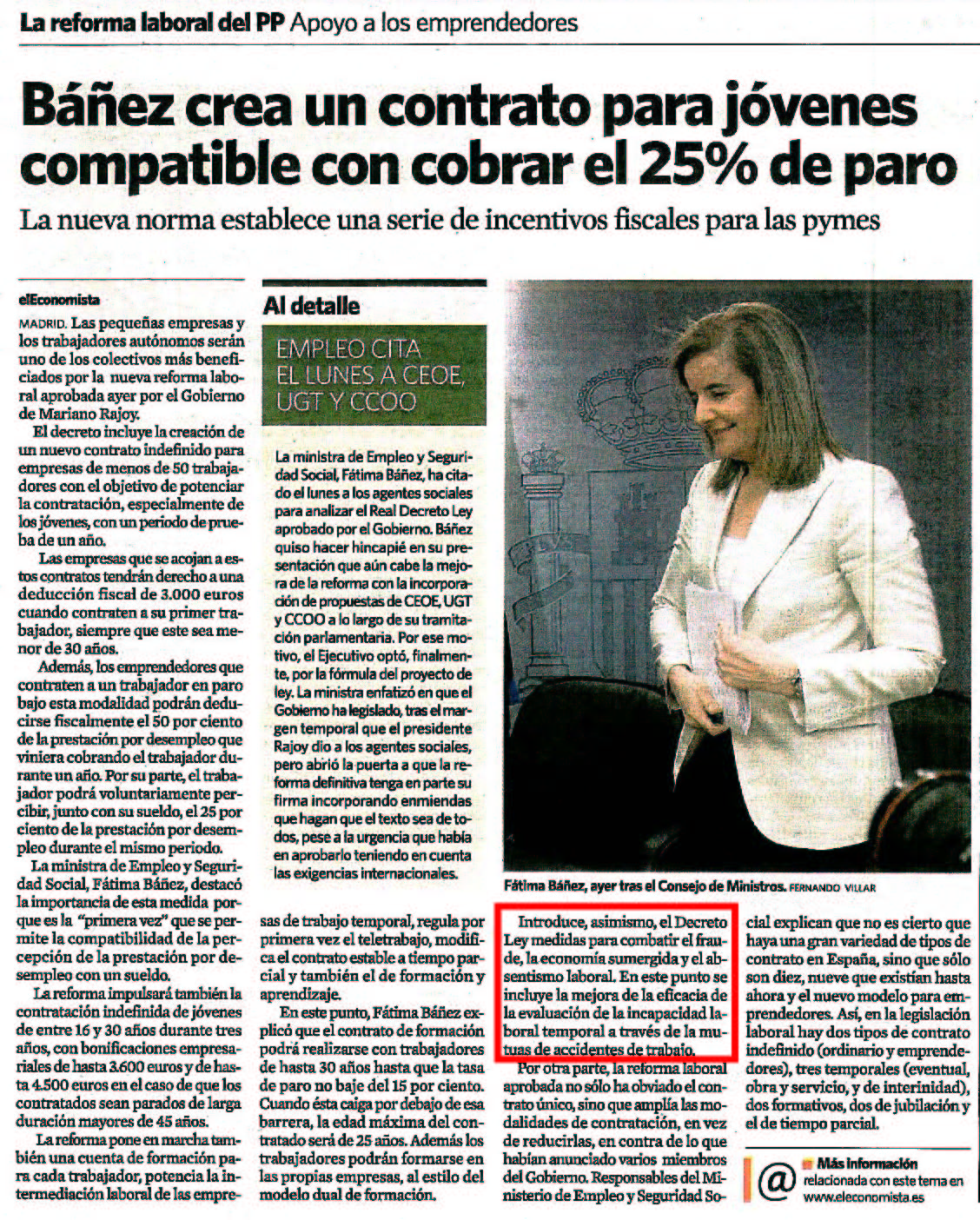 Banez crea un contrato para jovenes compatible con cobrar el 25% de paro.