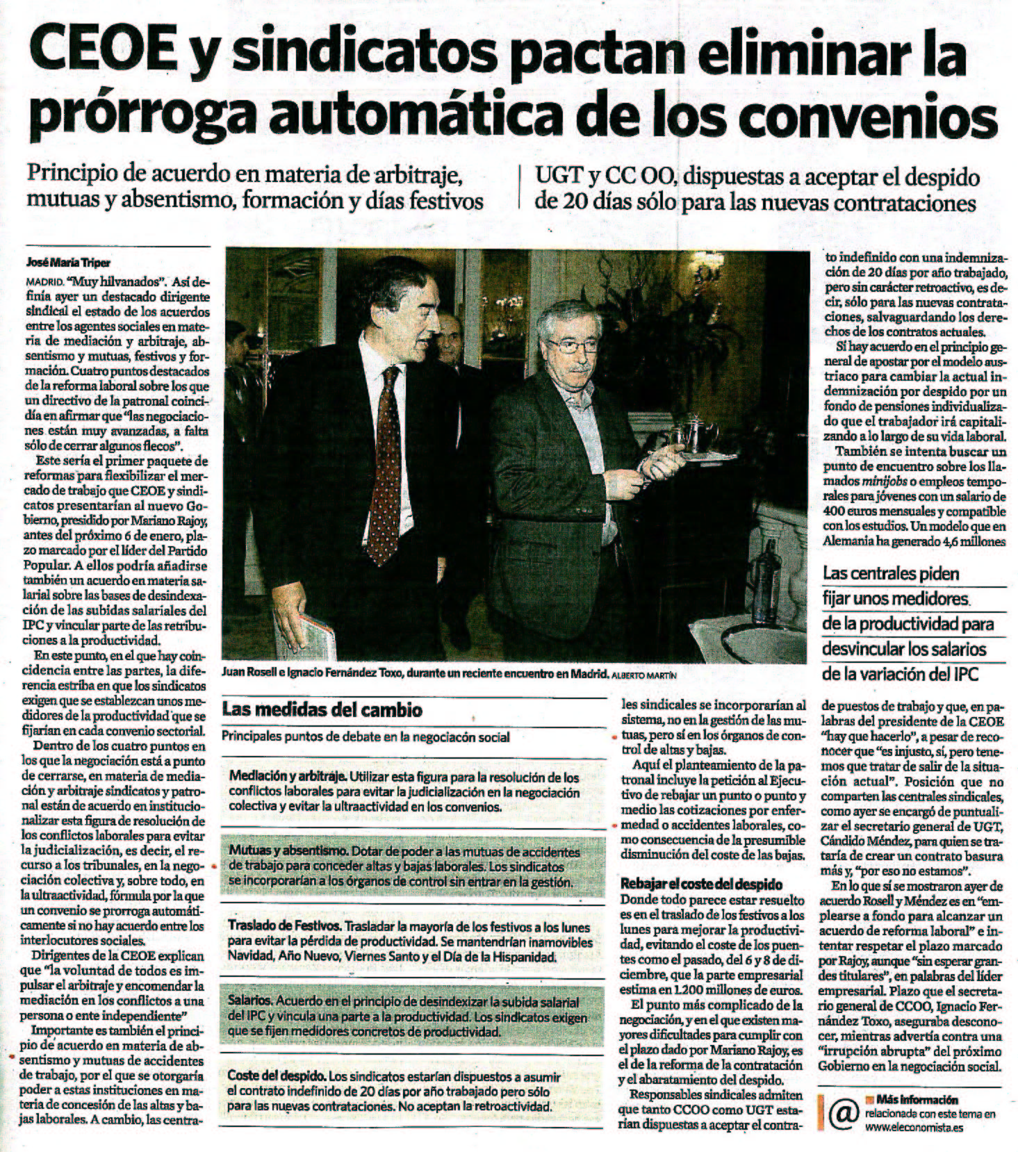 UGT y CC.OO., dispuestas a aceptar el despido de 20 dias solo para las nuevas contrataciones.