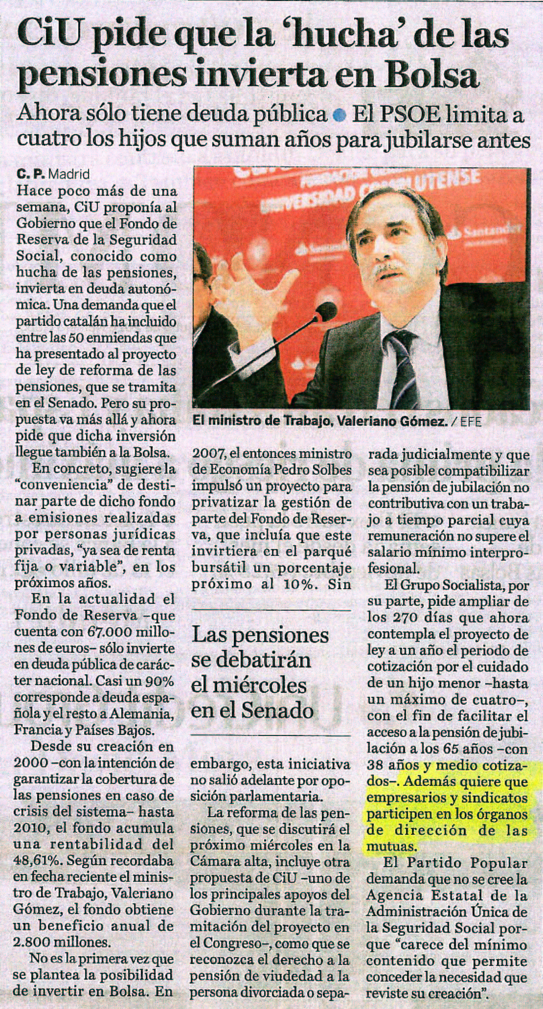 CiU pide que la -hucha- de las pensiones invierta en Bolsa