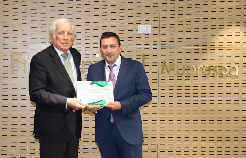 José Luis Zurro, jefe de prevención de riesgos laborales en los Colegios El Valle, recibió el galardón de manos de Carlos Espinosa de los Monteros, presidente de Fraternidad-Muprespa, en un acto de entrega que tuvo lugar en el Hospital Fraternidad-Muprespa Habana el 23 de abril.