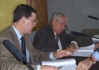 El director gerente de Mutua Montanesa, Rafael Fonseca, y el presidente de la Camara de Comercio de Murcia, Pedro Garcia-Balibrea, han firmado esta manana un convenio de colaboracion para difundir entre las empresas pertenecientes a la Corporacion los servicios y cobertura que la Mutua les ofrece.