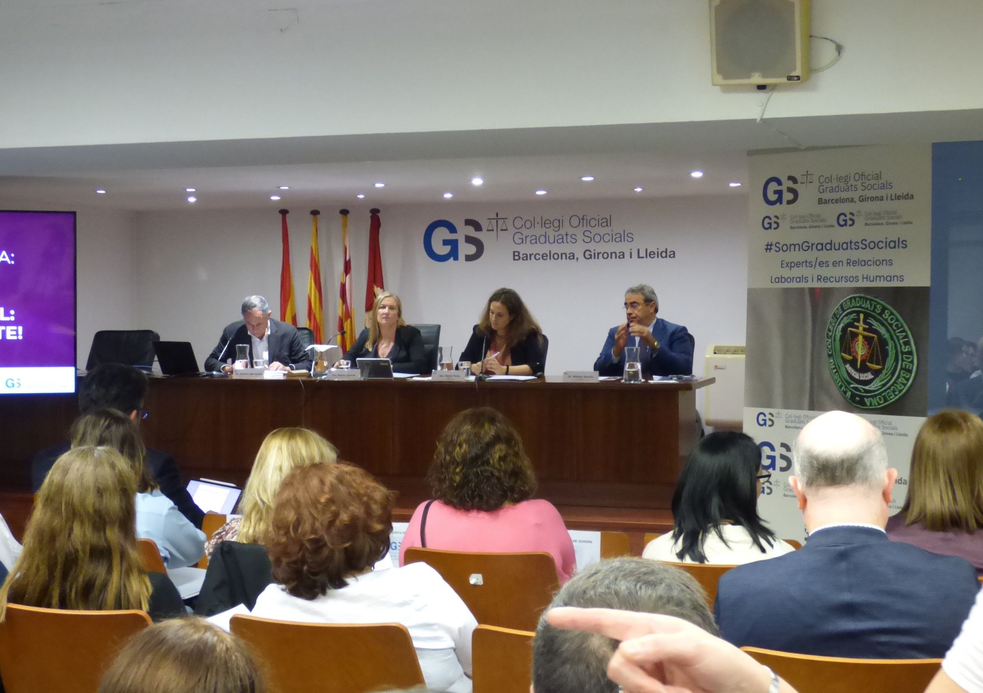 El acto fue moderado por la Sra. Beatriz Amores Ruiz, Secretaria General del Colegio de Graduados Sociales de Barcelona, Girona y Lleida, quien dio la bienvenida a los asistentes y presentó la jornada. En su intervención, la Sra. Amores destacó la relevancia de mantener a los profesionales informados sobre los constantes cambios legislativos y la importancia de eventos como este para el desarrollo y actualización del sector.