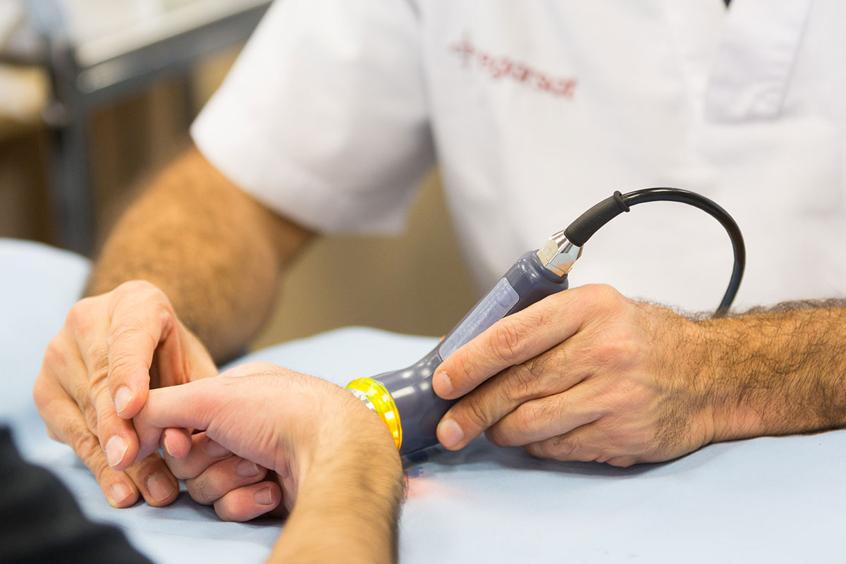 El área de Fisioterapia, de importante valor profesional y humano, se ha dotado con el instrumental y equipamiento de última generación en electroterapia en todas sus modalidades de onda y frecuencias, equipos de ultrasonido, presoterapia y magnetoterapia.