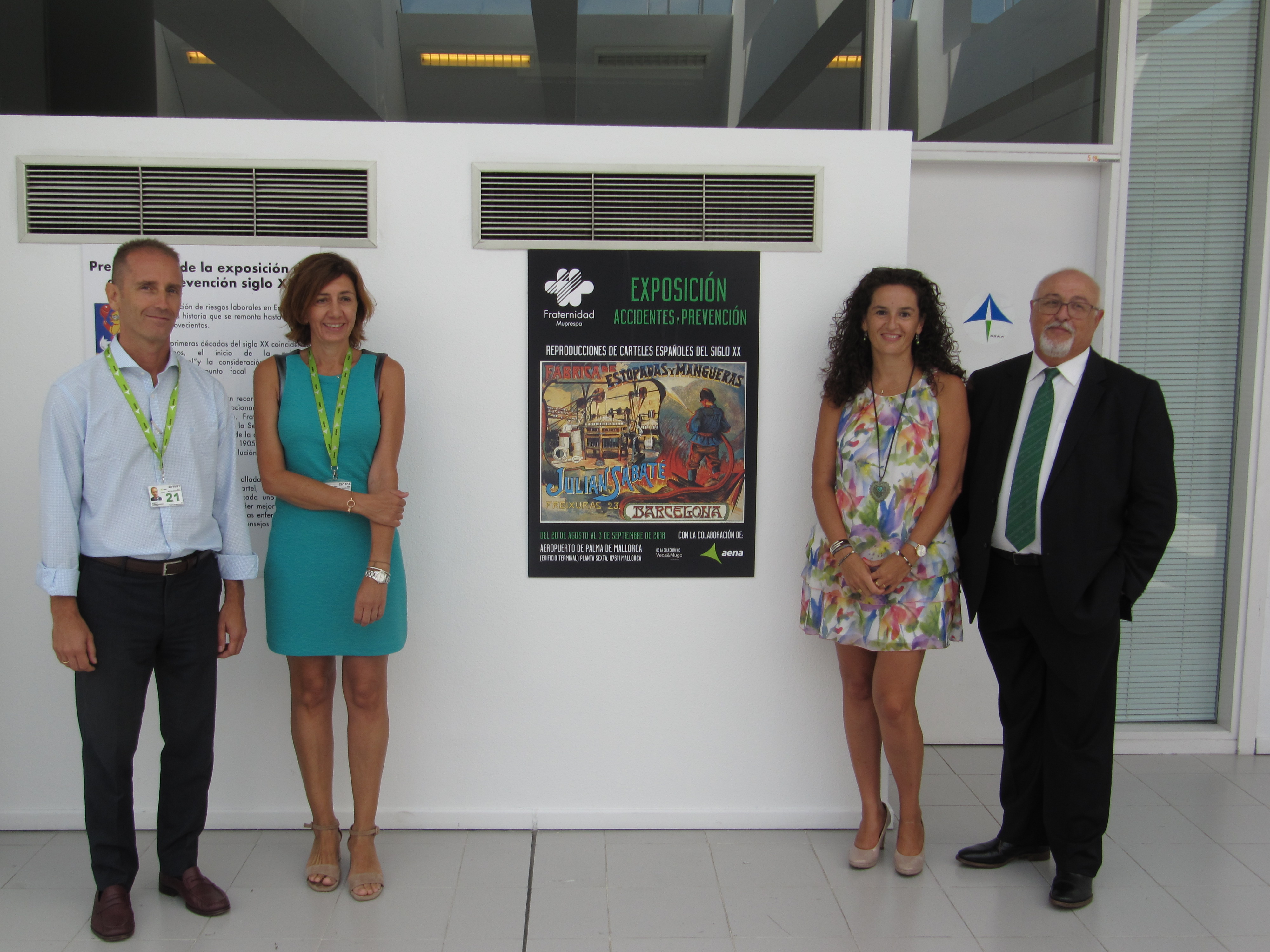 Fraternidad-Muprespa y Aena han inaugurado una exposicion de carteles de tematica relacionada con la seguridad en el trabajo, la prevencion y la salud laboral. La muestra se puede visitar en la sala de exposiciones del aeropuerto de Palma de Mallorca hasta el 3 de septiembre.