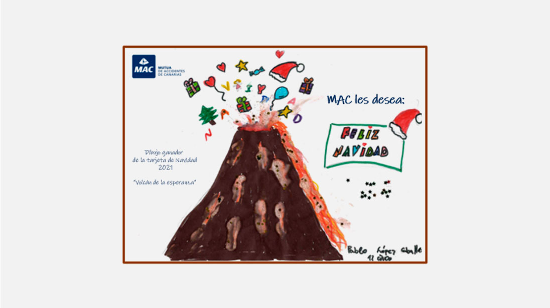 Pablo López Caballero, de doce años, fue el ganador del concurso de dibujos que auspicia nuestra Mutua y que ha servido para ilustrar la tarjeta navideña de nuestra entidad. El título de su dibujo es «Volcán de la esperanza”.