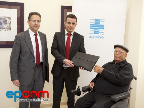 La Mutua Asepeyo ha otorgado a D. José Mollá Clement, palmerero de una empresa mutualista de Elche, un total de 13.800 euros en concepto de ayuda. El beneficiario tiene la condición de gran dependiente, por haber sufrido hace 42 años un accidente laboral al caer de una palmera, lo que le causó una lesión medular. La ayuda fue entregada en las oficinas de la mutua de Elche por el director de la misma, José Alonso, y por el concejal de Sanidad, Carlos Ávila. El importe se ha destinado en concepto de ayuda para la eliminación de barreras arquitectónicas en su vivienda habitual, para mejorar en la medida de lo posible, su calidad de vida.