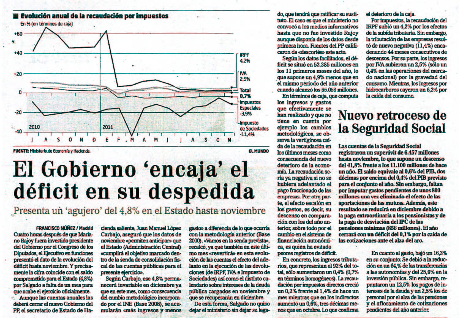 El Gobierno -encaja- el deficit en su despedida.