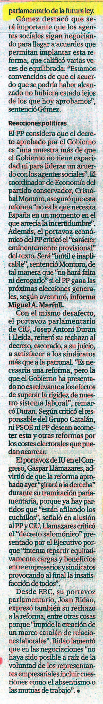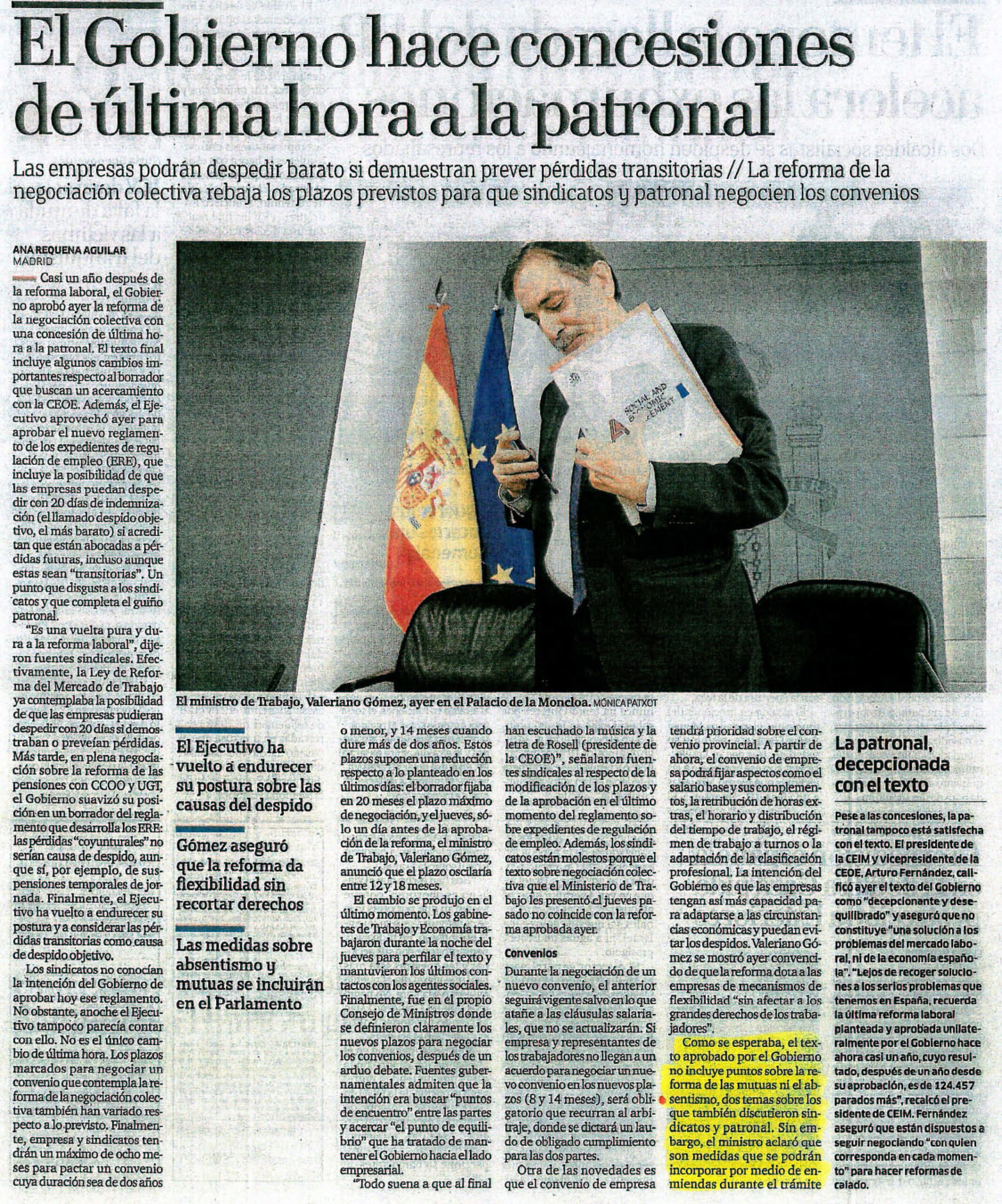 La reforma de la negociacion colectiva rebaja los plazos previstos para que sindicatos y patronal negocien los convenios.