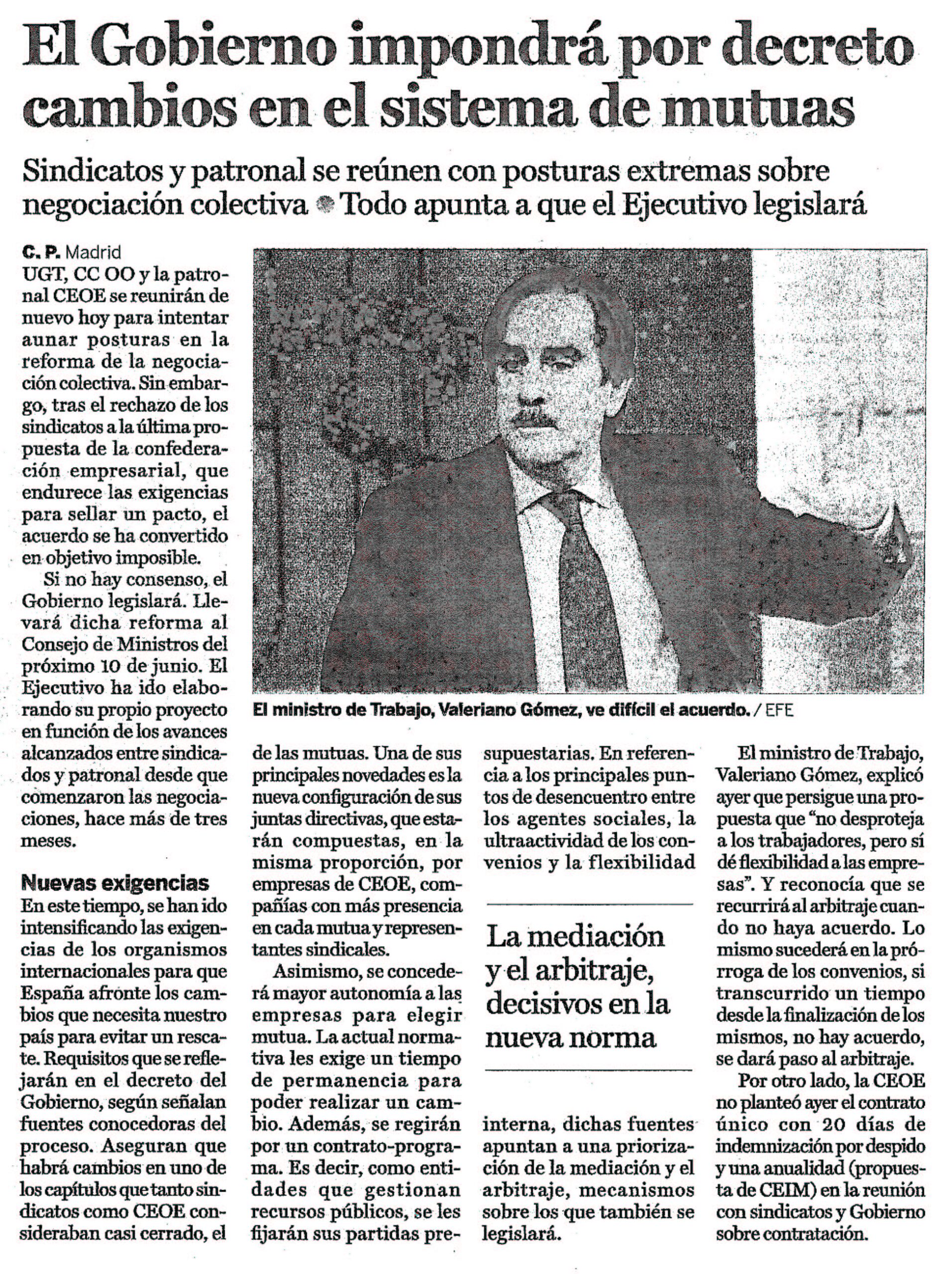 El Gobierno impondra por decreto cambios en el sistema de mutuas.