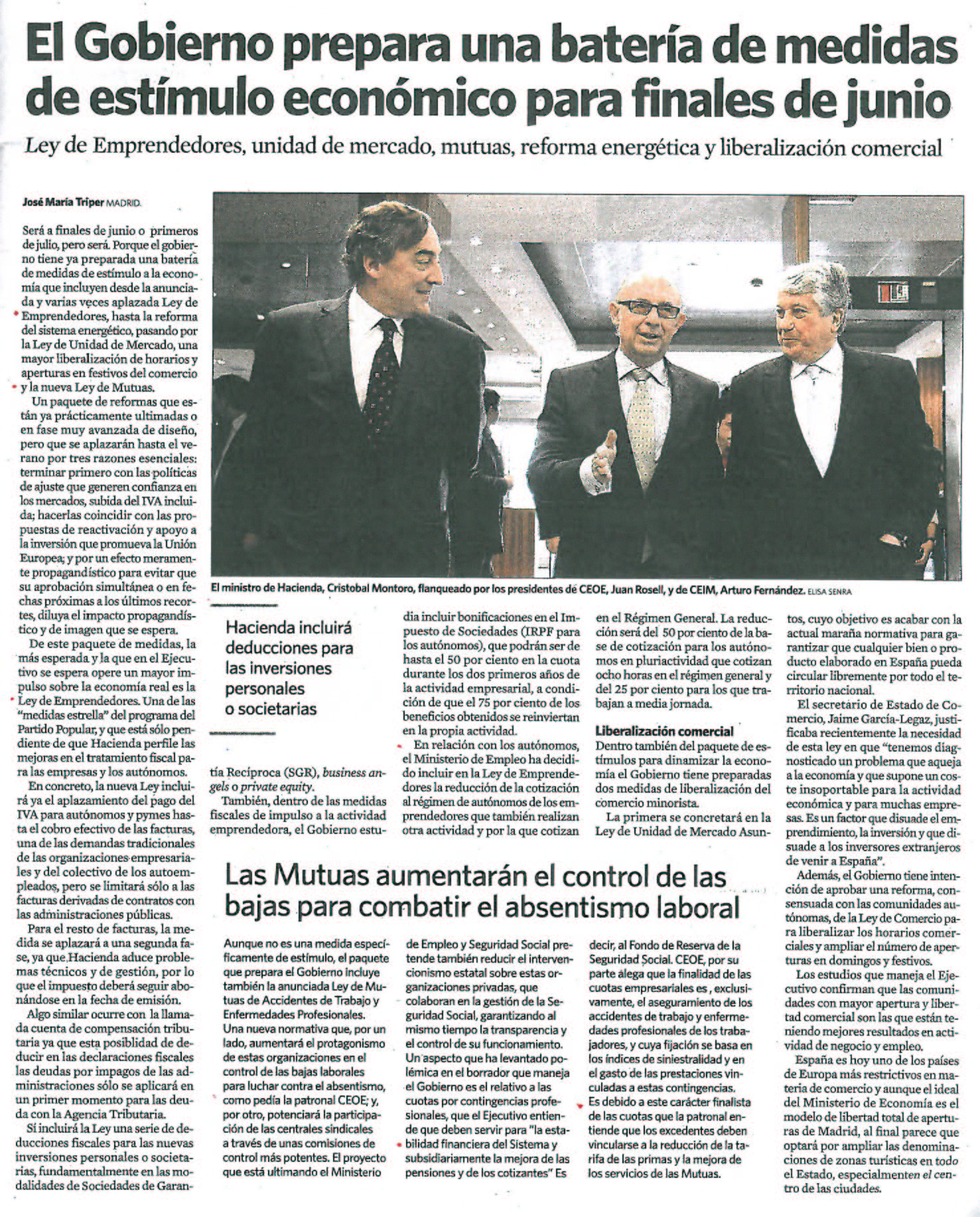El Gobierno prepara una bateria de medidas de estimulo economico para finales de junio.