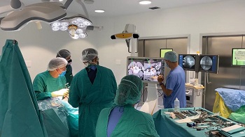 El Hospital Asepeyo Coslada ha realizado la primera cirugía en nuestro país, utilizando un nuevo sistema inteligente de navegación de columna. Se trata de una innovadora tecnología que utiliza una plataforma abierta para la cirugía de columna, guiada por la imagen, que permite colocar, en tiempo real, los tornillos pediculares con una mayor precisión que las técnicas quirúrgicas convencionales.