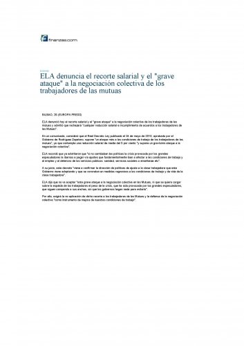 ELA dijo que no va aceptar "este grave ataque a la negociación colectiva en las Mutuas, ni que se quiera cargar sobre la espalda de los trabajadores el peso de la crisis, que ha sido provocada por los grandes especuladores, que siguen campando a sus anchas, sin que los gobiernos hagan nada para evitarlo".