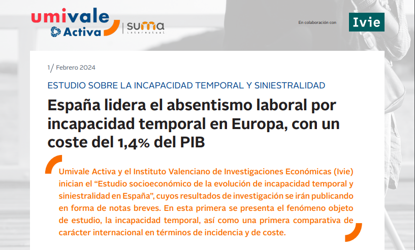 Son algunas de las conclusiones del segundo informe del estudio sobre los determinantes del absentismo laboral, puesto en marcha por Umivale Activa y el Ivie. En este caso analizan las jornadas perdidas en 2023, así como la intensidad de la incapacidad temporal, que depende de la incidencia y de la duración media de las bajas registradas.