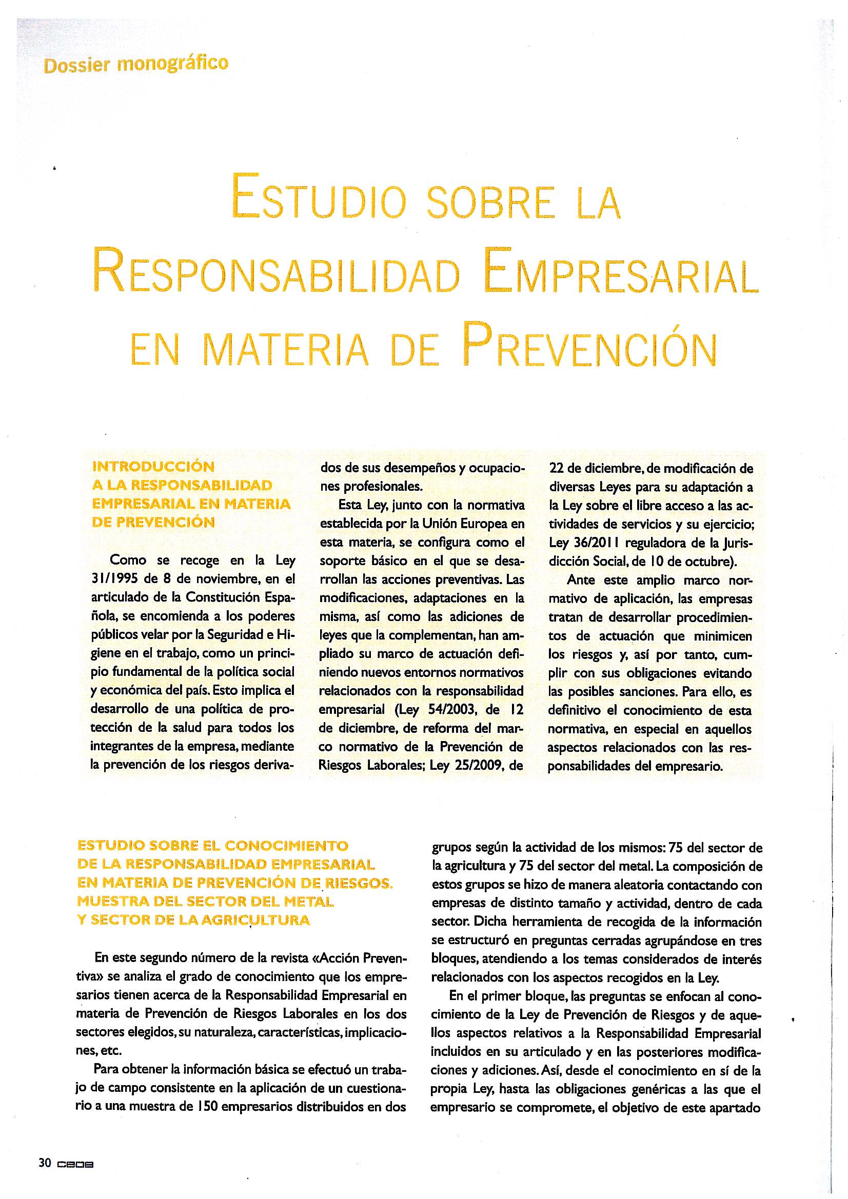 Estudio sobre la responsabilidad empresarial en materia de prevencion.
