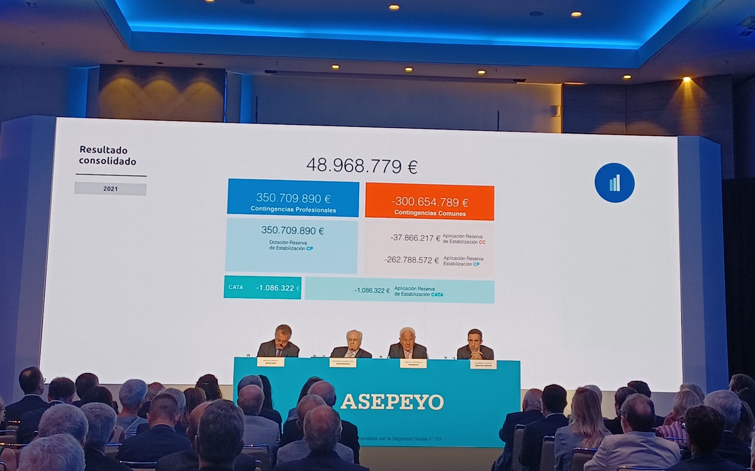 Asepeyo presentó los datos del ejercicio 2021 en su Junta General Ordinaria de Mutualistas, celebrada ayer en Barcelona. La Mutua ha cerrado el ejercicio con un resultado consolidado de 49 millones de euros, y con unos ingresos de 2.572 millones de euros, mejorando los resultados obtenidos en 2020. La media anual de trabajadores protegidos se ha situado en los 2.765.174 y las empresas asociadas en 268.958, cifras superiores al ejercicio anterior. La siniestralidad laboral ha aumentado sin alcanzar los niveles prepandemia, y las bajas por contingencia común siguen la tendencia al alza de los últimos años, provocando un incremento de la actividad sanitaria.