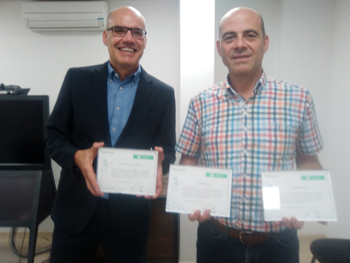 Ha recogido los diplomas Juan Cusco Albero, director de RRHH en SBG Groupe, de manos de Daniel Cardenas Collado, director de la Delegacion de Hospitalet de Llobregat.