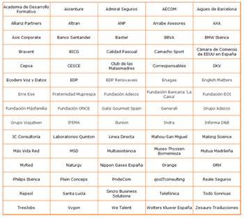 Más de 75 empresas, entre las que se encuentra Fraternidad-Muprespa, así como empresas mutualistas entre las que se encuentran entre otras Axa, BBVA, Calidad Pascual, Repsol o Telefónica, se han comprometido con la necesidad de extender una cultura de flexibilidad y teletrabajo para fomentar una sociedad más avanzada y acorde a los nuevos tiempos; con el rigor y mejora continua a través de una verificación externa del cumplimiento del chárter y con el reconocimiento a través de un sello que verifica el compromiso y los planes puestos en marcha.