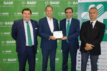 Han recogido el diploma por parte de BASF, Fernando Montil, responsable del Centro de Guadalajara y David Serrano, responsable de Seguridad y Medio Ambiente, que ha sido entregado por el director territorial Meseta Sur de la Mutua Eduardo Sanz y por el director provincial de Guadalajara, Juan Carlos Saz.