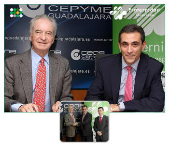 El acuerdo fue suscrito por el director territorial de la meseta sur de Fraternidad Muprespa, D.Eduardo Sanz, y el presidente de CEOE-CEPYME Guadalajara, D.Agustin de Grandes.